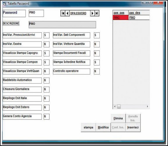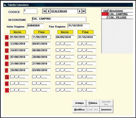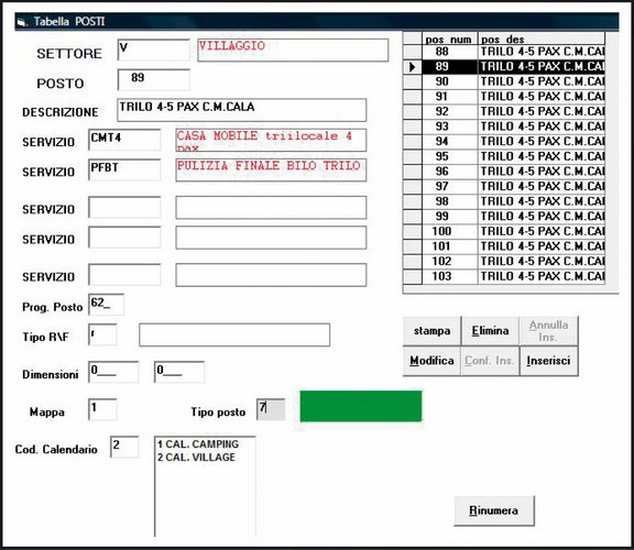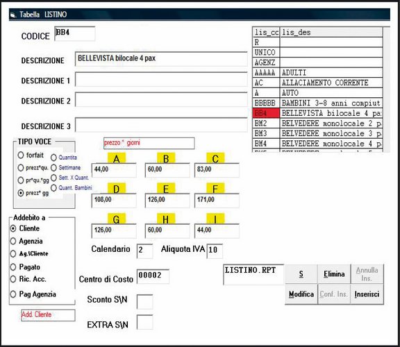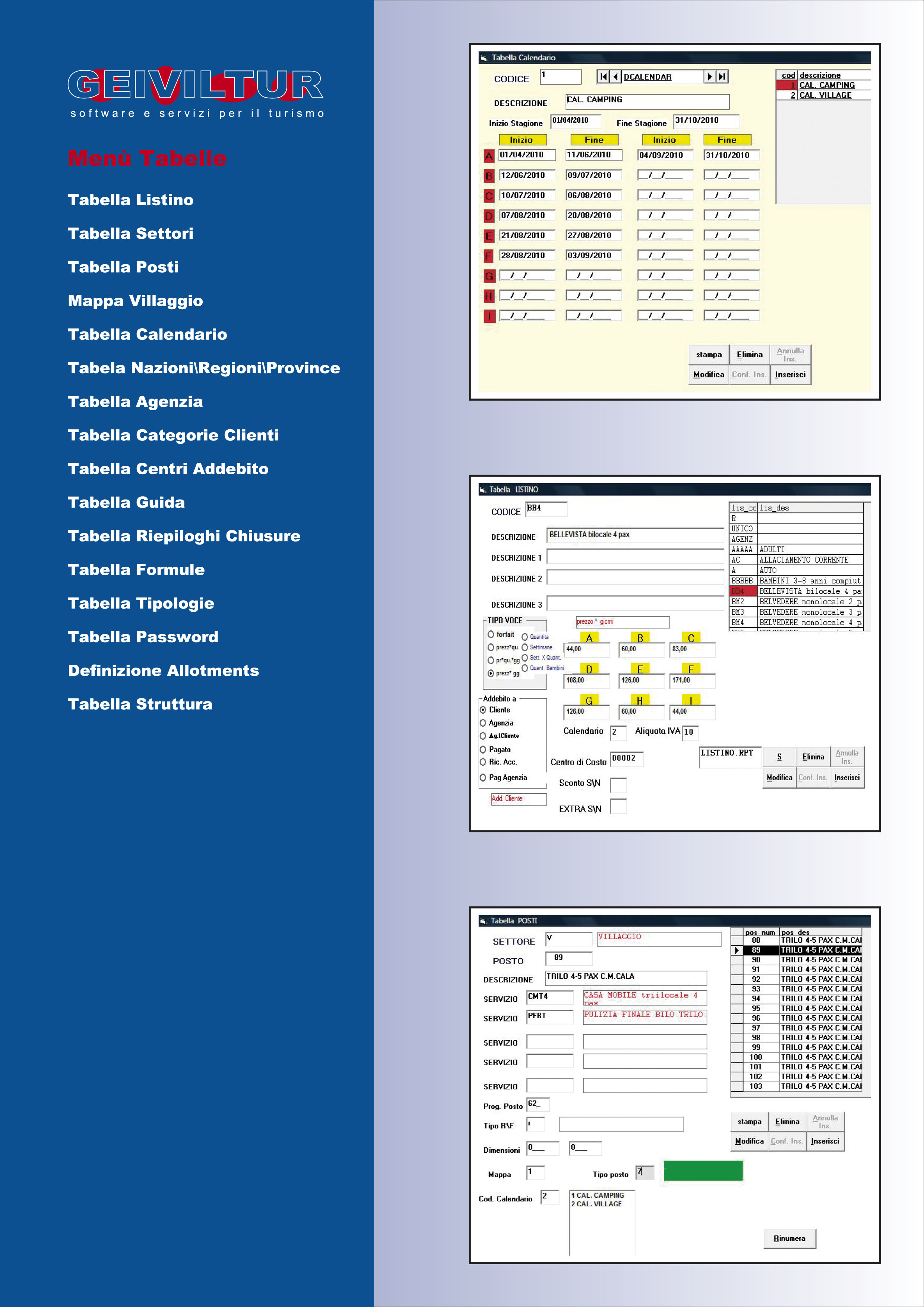 Tabella ListinoTabella Settori Tabella Posti Piantina Villaggio Tabella Calendario Tabella Nazioni/Regioni/Province Tabella Agenzia Tabella Categorie Clienti Tabella Centri Addebito Tabella Guida Tabella Riepiloghi Chiusure Tabella Formule Tabella Tipologie Tabella Password Tabella Allotments Tabella Struttura |